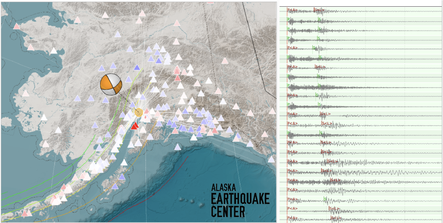 Rapid analysis of the M6 Susitna earthquake using our new Gen3 system. The focal mechanism was available less than five minutes after detection, illustrating the system’s advanced real-time capabilities. (Credit: Derreck Gossett)