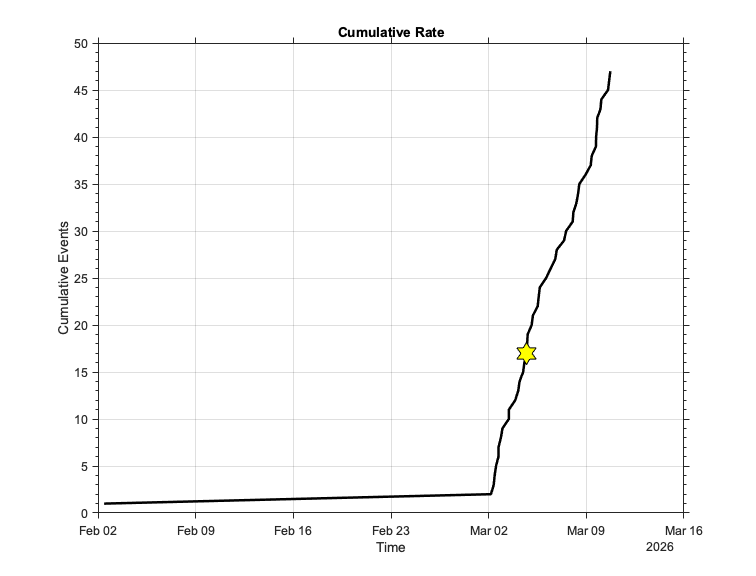 Since March 1, this remote stretch of the Aleutians has produced a total of 48 earthquakes (Figure 2), with five magnitude 5 earthquakes and 28 magnitude 4 earthquakes (Figure 3). There were almost certainly many more smaller ones that we simply couldn’t detect because of the distance to our nearest stations.