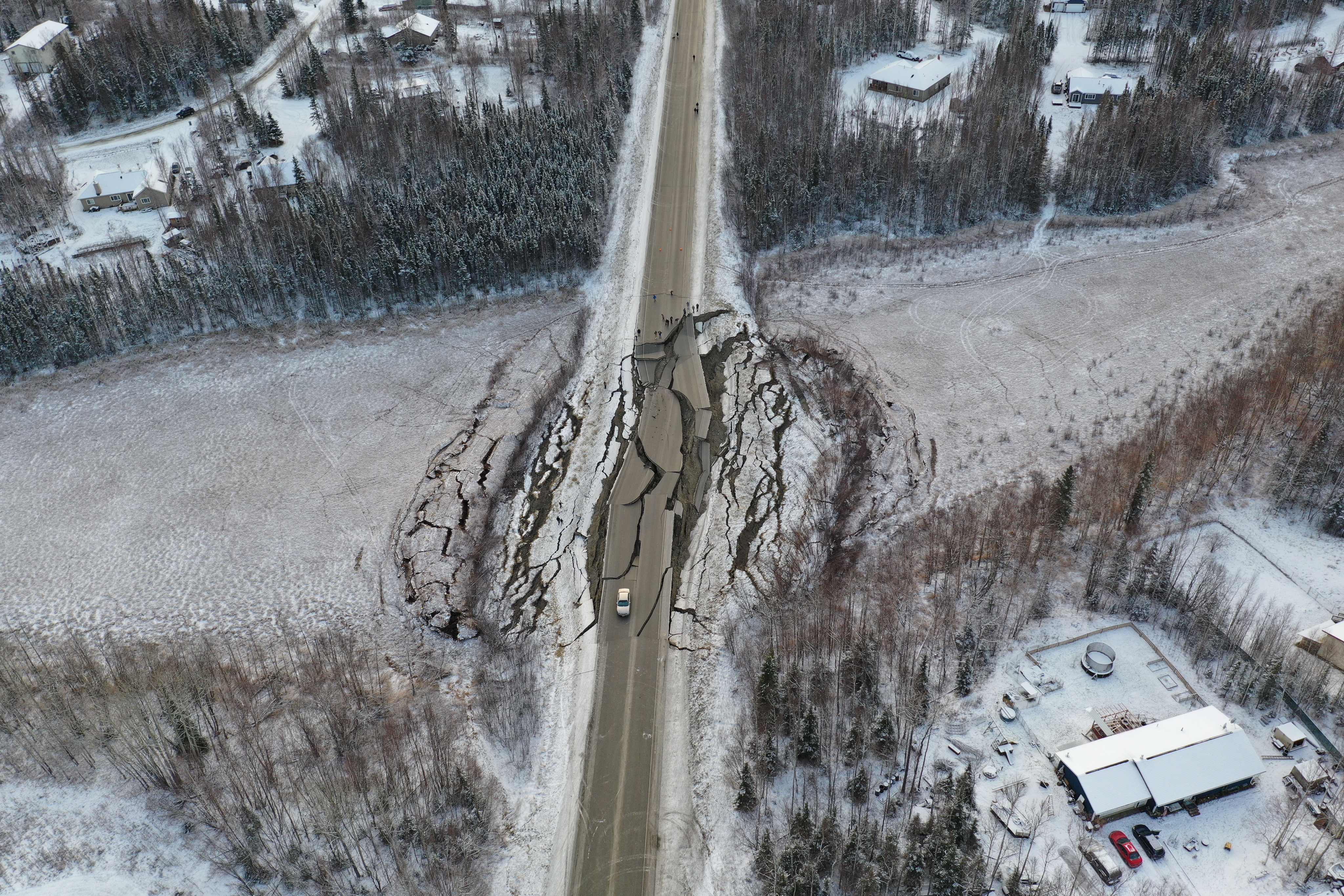 Damage to Vine Road near Wasilla from the 2018 M7.1 Anchorage Earthquake. Photo courtesy of Alaska Department of Transportation.
