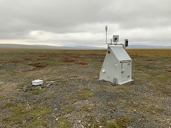 C16K was installed in 2017 as part of the temporary USArray project and integrated in 2020 into the permanent Alaska network as part of the National Science Foundation-sponsored Alaska Geophysics Arctic Observing Network project. This station is located on the North Slope, near the Lisburne Hills on the Lisburne Peninsula. It is situated in an area of flat Arctic tundra, east of the community of Point Hope. Wildlife is a challenge: this station has suffered bear damage in the past. C16K is generously hosted by our partners at the Arctic Slope Regional Corporation (ASRC) and the North Slope Borough. Photo courtesy of Array Network Facility.